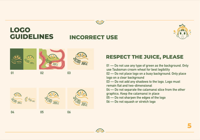 Jusko Juice is a Filipino Juice brand, playing on the phrase "ai-dyisko," meaning "oh my gosh." This focuses on the fun and surprising flavors of calamansi juice. Following this shocking feeling, I developed two logos, pictoral, and a logotype that reflected this. I decided on one logo that showcased the movement of juice, as well as a little boy mascot that reflects the feeling of shock and taste.